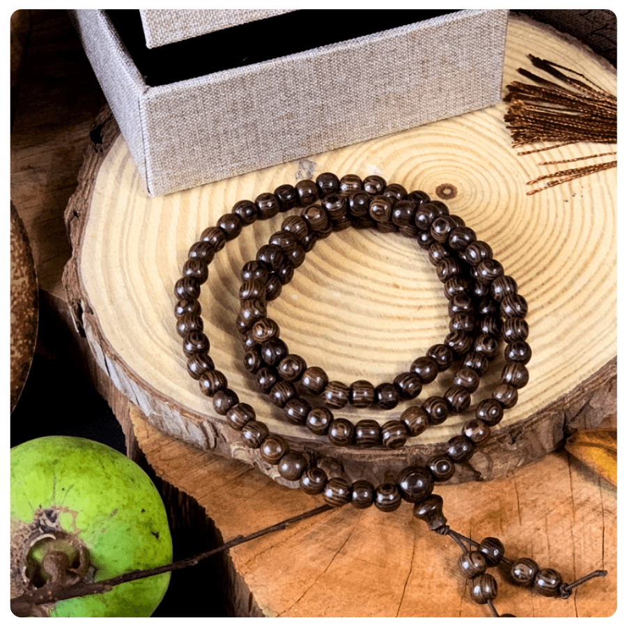 Vòng cổ gỗ hương ( 108 hạt) mun đuôi công